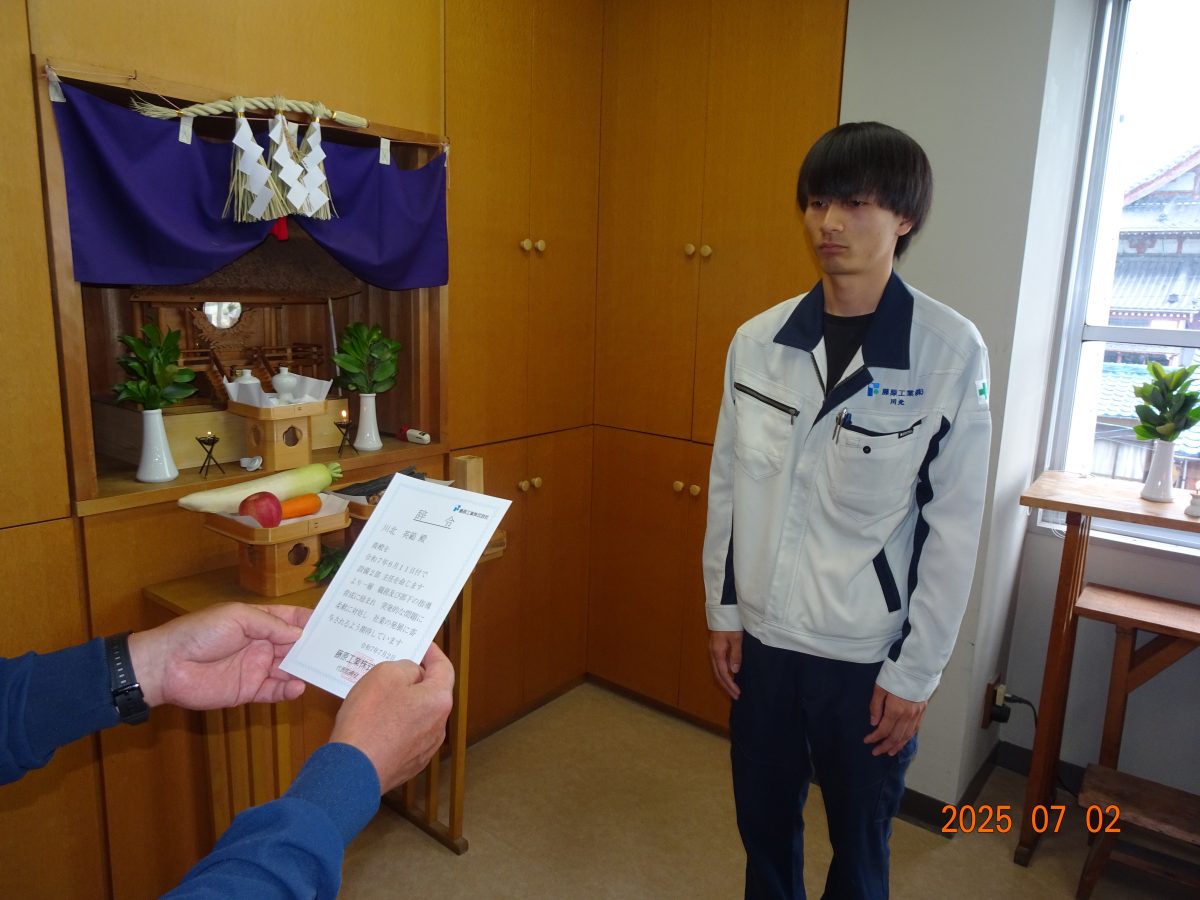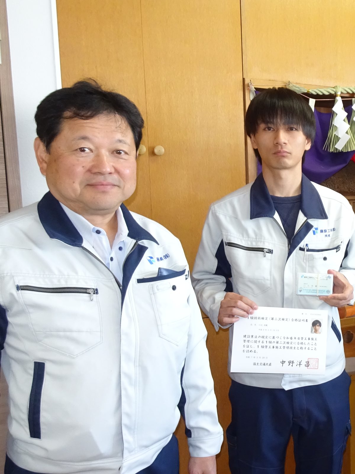 2025年07月06日 二人の社員が、主任に昇格しました!【入社してから5年です!】 2020年春に新卒で入社した二人の社員が、主任に昇格しました! 知識も経験もゼロスタートでしたが、立派な技術者(現場監督)として独り立ちしています。 後輩からは慕われ、先輩からは信頼されています。 若い二人の誠実な仕事ぶりが、社内の活気となっています。 後輩たちのロールモデルです! 20代社員がたくさん活躍している職場です! (長年勤めている社員が、どんどん若返っています!) 一覧へ戻る