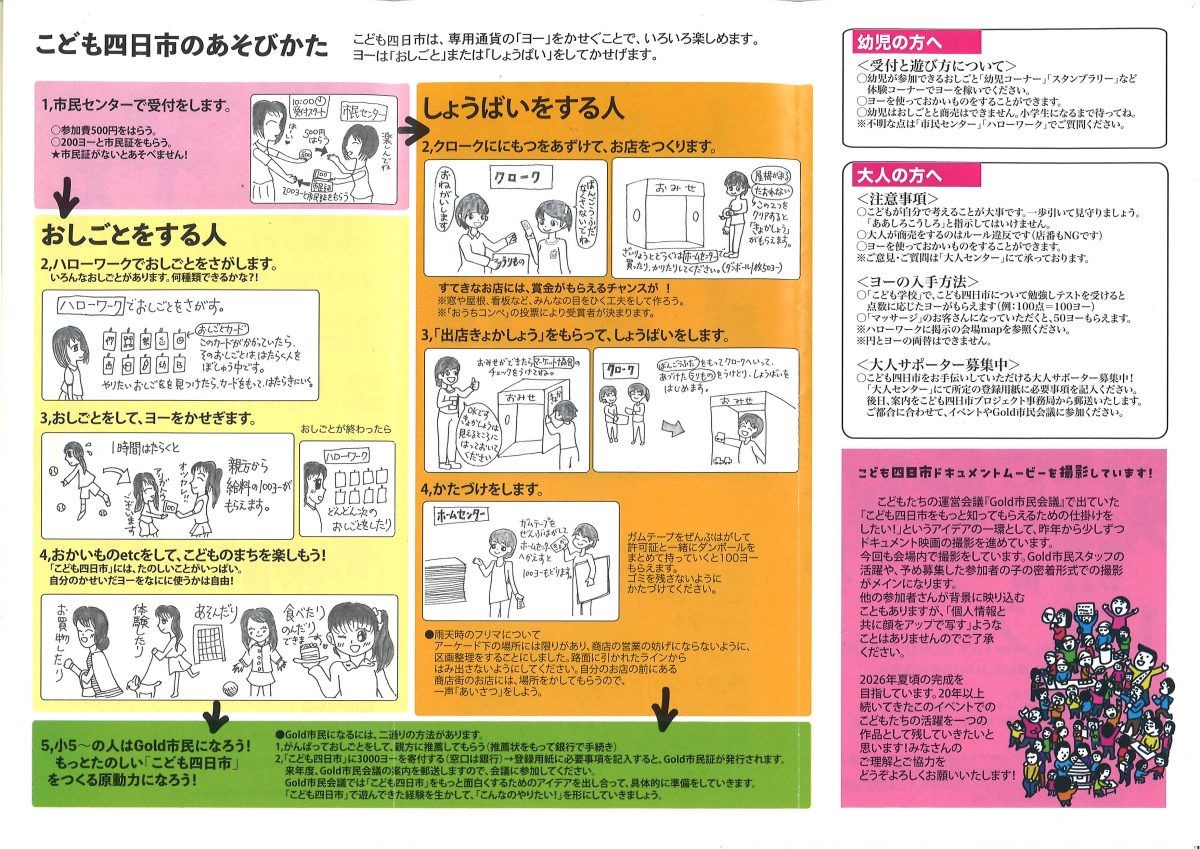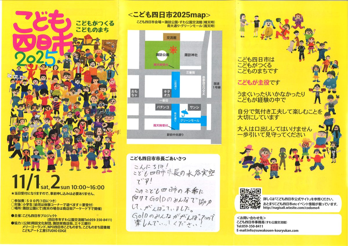 2025年10月12日 こども四日市2025が開催されます〔こどもがつくる こどものまち〕 こども四日市2025が 今年も開催されます! 2025年11月1日(土)、11月2日(日)10:00-16:00 参加費:一日につき500円 対象:小学生 場所:諏訪公園(雨天時は商店街アーケード下) 当社社長が代表を務める「NPO法人四日市こどものまち」が協力しています! 一覧へ戻る