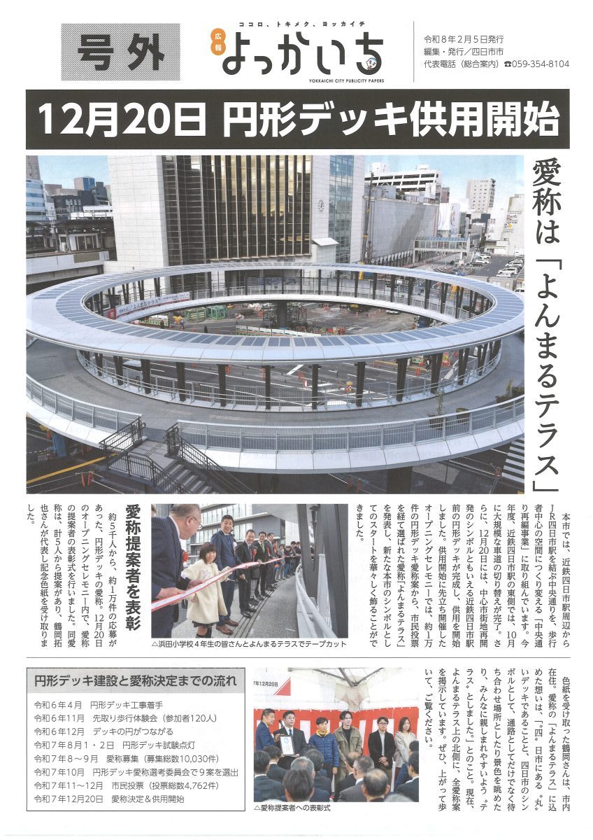 近鉄四日市駅前に円形デッキ「よんまるテラス」の供給が開始されました!