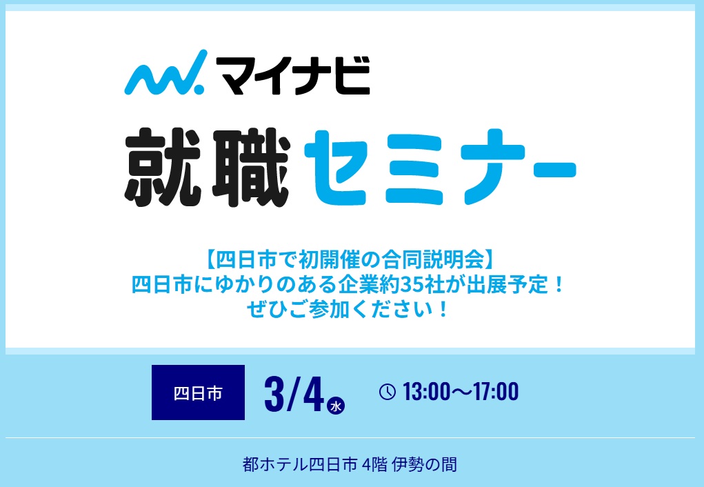 3/4 マイナビ就職セミナー《四日市で初開催の合同説明会》出展します!