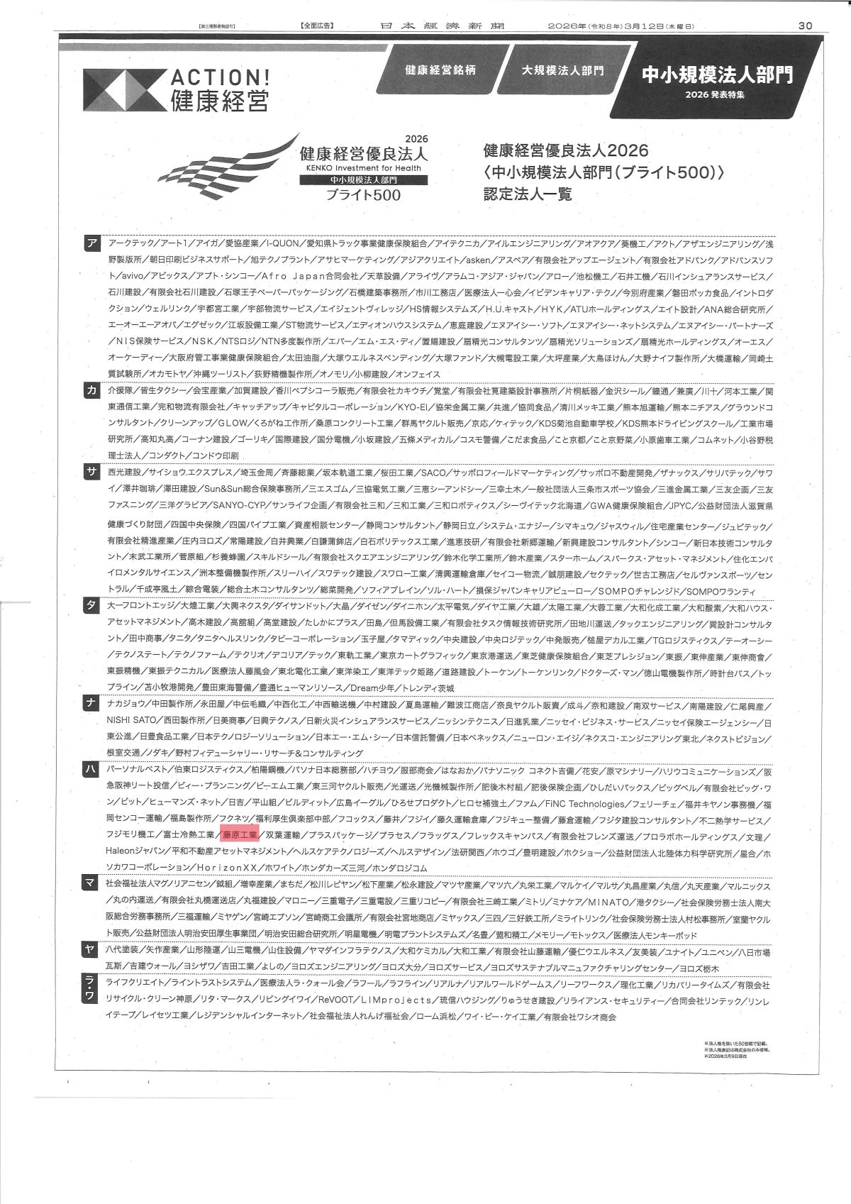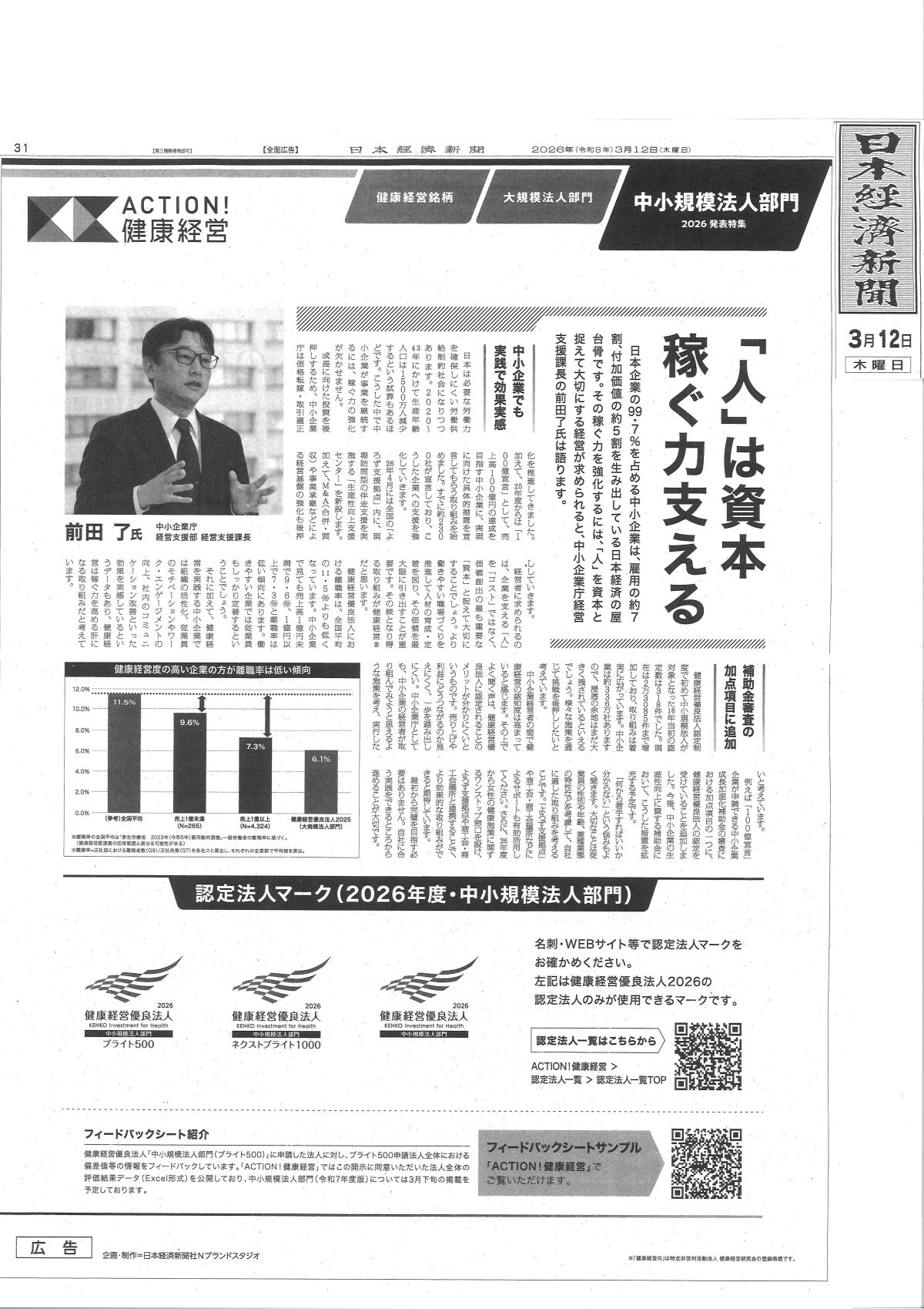 「人」は資本 稼ぐ力支える ブライト500認定法人【日本経済新聞・広告】